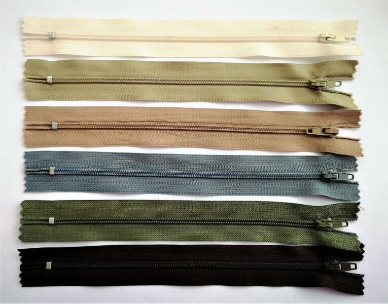 Műanyag nem bontható spirál fogú cipzár - húzózár csomag, vegyes színekben. Különféle célokra, nadrágba, szoknyába, táskába stb. Csomagban 6 db különféle színű 18 cm hosszú cipzárt található. ( bézs - világos khaki - világos barna - szürke - khakizöld - sötétbarna) Hossza: 18 cm Cipzár szélessége: 3 mm A cipzár végzáróval van ellátva ebből adódóan nem ny