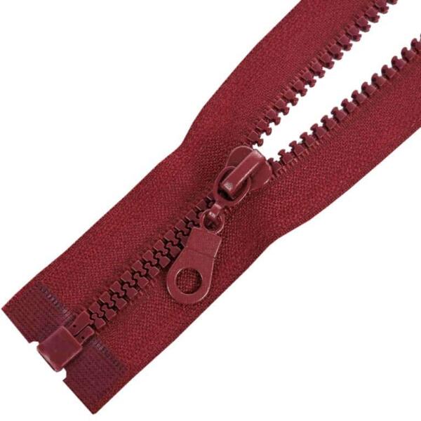Öntött műanyag fogazattal rendelkező bontható (nyitható) cipzár. Ezt a típusú cipzárt hívják cápafogú, farkas fogú cipzárnak is. A fogazat szélessége 5 mm, a cipzárszalag teljes szélessége 3,2 cm. A fogazat színe megegyezik a textilszalag színével, a cipzárkocsi kör formájú (M4). A cipzár hossza: 75 cm A cipzárszalag színét egy színkód jelzi, így könnyen válasz