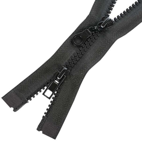 Öntött műanyag fogazattal rendelkező bontható cipzár két cipzárkocsival. Ezt a típusú cipzárt hívják cápafogú vagy farkas fogú kabátcipzárnak is. A fogazat szélessége 5 mm, a cipzárszalag teljes szélessége 3,5 cm. A fogazat és a cipzárkocsik színe megegyezik a textilszalag színével (M4). A cipzár hossza: 60 cm A cipzárszalag színét egy színkód jelzi, így könnyen