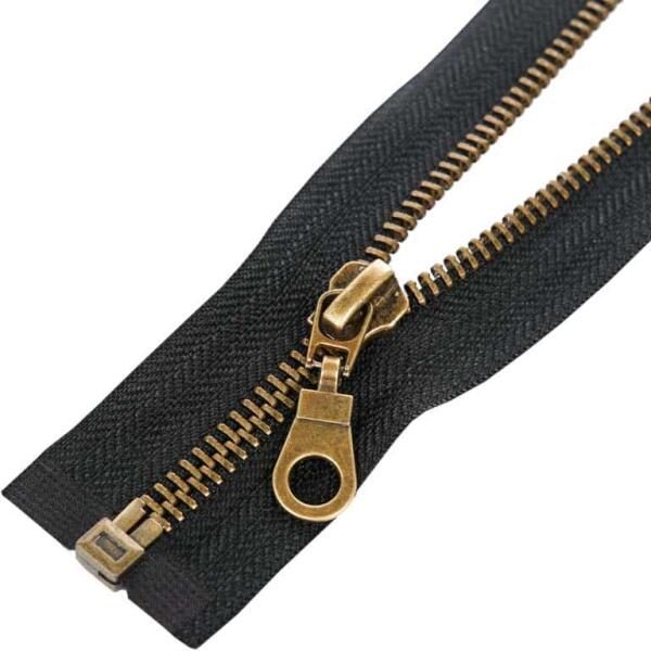 Antik sárgaréz fogazatú nyitható cipzár. 5 mm széles fém fogazattal rendelkezik, erős és tartós típus. A hordozó textilszalag szélessége 3,5 cm. Alkalmas például ruházati cikkek, kabátok, dzsekik, pulóverek, munkaruházat készítésénél és javításánál. A cipzárszalag színét egy színkód jelzi, így könnyen választhat ugyanolyan színkóddal rendelkező egyéb term