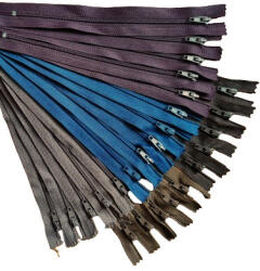 Műanyag nem bontható spirál fogú cipzár - húzózár csomag, Barna - Padlizsán és Kék árnyalatokban. A cipzár végzáróval van ellátva ebből adódóan nem nyitható. Különféle célokra, nadrágba, szoknyába, táskába stb. Csomagban 25 db különféle színű (fotón látható színekben) 18 cm hosszú cipzár található. Hossza : 18 cm A cipzár végzáróval van ellátva ebből