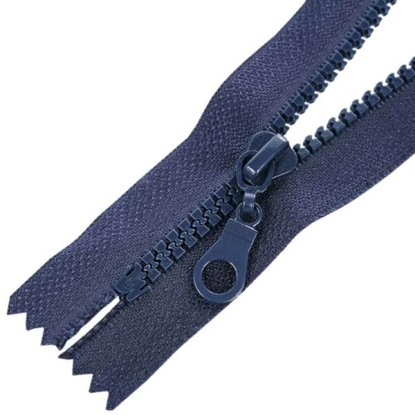 Öntött műanyag fogazattal rendelkező bontható (nyitható) cipzár. Ezt a típusú cipzárt hívják cápafogú, farkas fogú cipzárnak is. A fogazat szélessége 5 mm, a cipzárszalag teljes szélessége 3,2 cm. A fogazat színe megegyezik a textilszalag színével, a cipzárkocsi kör formájú (M4). A cipzár hossza: 40 cm A cipzárszalag színét egy színkód jelzi, így könnyen válasz