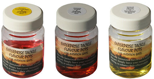 A különlegesen előállított Enterprise Tackle folyékony aromák teljességgel átjárják csalijainkat, nem úgy, mint a hagyományos aromák, amelyek csak egy réteget képeznek a csalik felületén. Praktikus kis tégelyekbe csomagoltuk az aromákat, amelyekbe egyszerűen belehelyezzük a csalit. A csalink teljes mértékben magába szívja az alkohol és észter bázisú folyadékot, amely