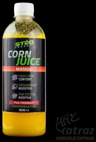 Stég Product Corn Juice Mango 500ml Aroma - Stég Kukoricakivonat Szirup A STÉG CORN JUICE 100%-os töménységű élelmiszeripari minőségű kukoricakivonat, rendkívül magas szénhidrát tartalommal! Édes, szirup állagú folyadék, amely vízben folyamatosan oldódik. Hatékony ízfokozó, mely kiválóan alkalmazható minden etetőanyagban, pasztában, pelletben és bojliban, ahol a cél