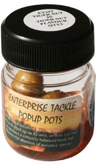 A tigrismogyorók fogósságáról számtalan horgásztársunk mesélhetne. Az Enterprise egyedi tigrismogyoró aromája, rendkívüli illatot biztosít a tökéletes Pop-Up (lebegő) csali utánzatoknak. A plasztik imitációk az aromát hosszú ideig megőrzik, lebegő tulajdonságuk pedig állandó marad. Az aromásított tigrisek az egyik legkedveltebb amur csalik, de a pontyok számára is vo