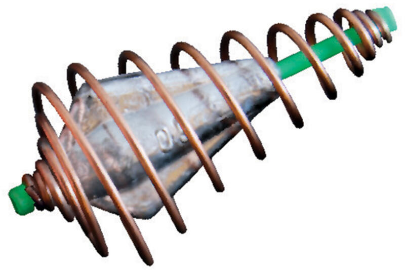 Kúpos, spirál etetőkosár szárnyas ólommal fenekező horgászoknak ponty, amur és keszeg horgászatához.