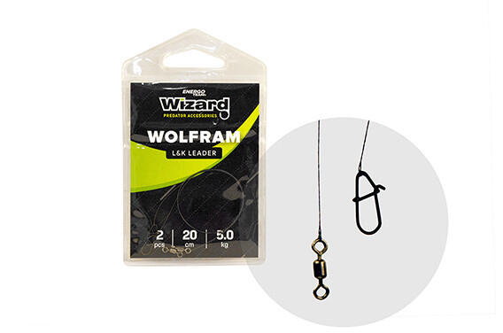 Wizard szerelt wolfram előke - 2 db/csomagA Wizard rablóhalas kiegészítők termékcsoportból nem hiányozhatnak a kellően vékony, és egyben lágy, kiváló minőségű pergető előkék sem!A termék gyártásánál a wolframszál előnyös tulajdonságai lettek előtérbe véve. Az ebből az anyagból készült előkék, mindamellett, hogy könnyűek és lágyak, rendkívül kopásállóa