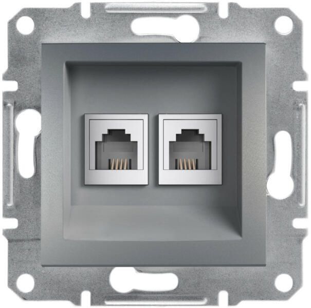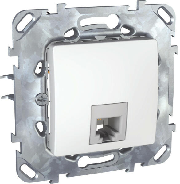 RJ11-es, hagyományos telefon csatlakozóaljzat. Asfora szerelvények - megbízható és stabilAz Asfora család a Schneider Elektric megszokott, kiváló minőségét kínálja. A galvanizált fém rögzítőkeretek kiváló rugalmasságot és korrózióállóságot biztosítanak. A hosszú és erős rögzítőkörmök többszöri fel és leszerelés után is tökéletes rögzítést biztosítana