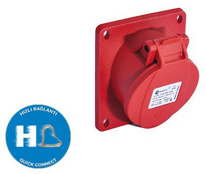 Gyorsbekötésű ipari csatlakozó család Kéziszerszám nélkül szerelhető! 5X32A - beépíthető dugalj Rugós - gyors bekötésű IP44 Speciálisan ipari épületekben vagy nyílt munkaterületen történő alkalmazásra kifejlesztett csatlakozó aljzatok és dugók. Anyaguk speciális, jó minőségű műanyag, amely a napfény okozta öregedést csökkentő és a mechanikai szilárdságot
