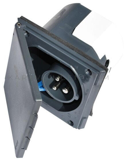 3 színben kapható elektromos külső csatlakozóaljzat rugós fedéllel 230 V / 16 A Kivágási méret: ø 94 mm Méret: 104 x 104 mm Beépítési mélység: 81 mm Furat: ø 89 mm Védettség: IP44 Szín: szürke