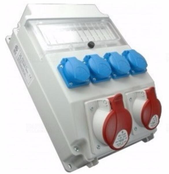 Aljzatok 400V 32A 5p: 1 Aljzatok 400V 16A 5p: 1 Aljzatok 230V HT 2p+f: 4 Biztosítás: Nincs Védettség: IP54 Modul férőhely: 11