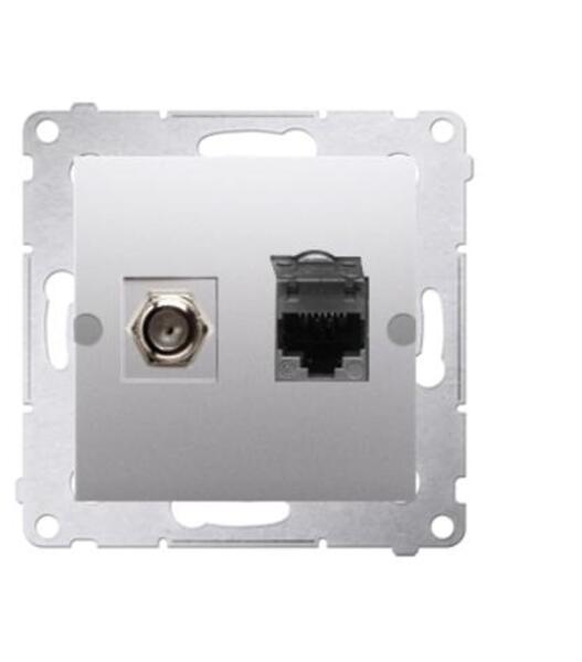 Aljzat 1 x SAT "F" + RJ45 kat. 6 Simon 54 prémium modul ezüst színű Specifikáció: Sorozat: Simon 54 prémium Termék neve: 1 x SAT "F" + RJ45 kat. 6 aljzat Színe: Színe: 1,5 mm: Ezüst Típus A csatlakozók típusa: "F" + rovátkolt zárószög IP-védelem: IP20 Porvédelem: igen Egyedi felszereléshez Material type: Halogénmentes műanyag, PC Felületkezelés: matt Szerelési mód: süll