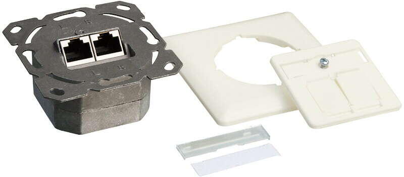 Hálózati fali aljzat Cat. 6 teljesen árnyékolt Cat. 6 E osztály, ISO/IEC 11801 és TIA/EIA-568 Vízszintes kábelbevezetés húzásmentesítővel LSA leállás, AWG 22-24 2 árnyékolt R45-ös emelő 40 -os szögben Mérete: 80 x 80 mm keret, 50 x 50 mm bemenet Süllyesztett vagy kábelcsatornás szerelés Szín: tiszta fehér, hasonló a RAL9010-hez Megfelelő felületű hátsó doboz: NP022