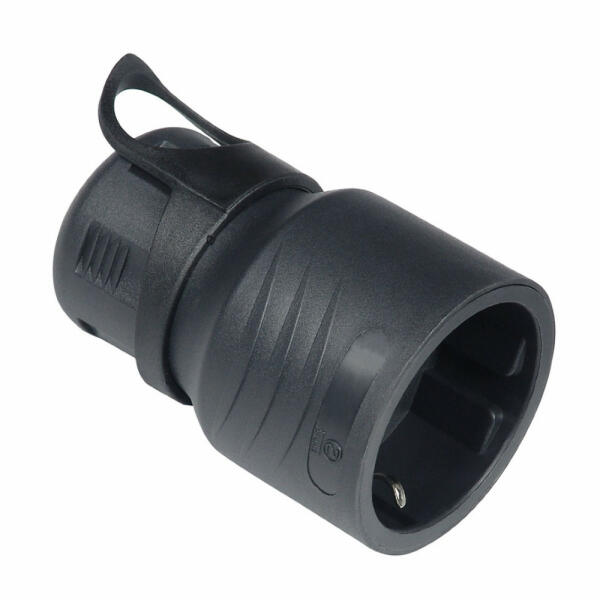 Csatlakozó hátsó kivezetésű lengő dugalj, 16A 250V ~, fekete Csatlakozó hátsó kivezetésű lengő dugalj, 16A 250V ~, fekete