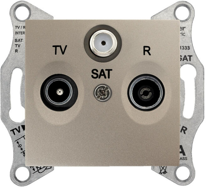 SEDNA TV/R/SAT aljzat, átmenő, 8 dB, titánium, keret nélkül TV dugós csatlakozó típusa: 1 IEC 9,52 mm-es dugó FM dugós csatlakozó típusa:Anya IEC 1 SAT dugós csatlakozó típusa: 1 F csatlakozó Kimenetek száma: 3 Csillapítás: 8 dB esetén TV jel esetén 5…862 MHz frekvencia 10 dB esetén Rádió jel esetén 88…125 MHz frekvencia 3 dB esetén SAT jel esetén 950…2400 MHz frek
