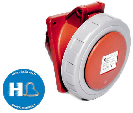 Beépíthető dugalj. - Anyaga: műanyag - Méret: 90 x 83 mm - Beépítési méret: 76 x 70 mm/ furat méret: 52 x 65 mm - Névleges áram: 32A - Pólusok száma: 5P - IP védettség: IP67 - Névleges feszültség: 380V - (3P+N+E / 6h) - Típus: rugós- gyors bekötésű, beépíthető, tekerős csapfedeles, ferde dugalj