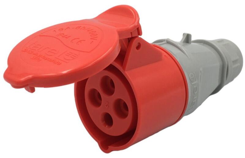 Kábelcsatlakozó 16A/400V/4P IP44 134 TAREL Feszültség: 400V Áram: 16A Pólusok száma: 4 Típus: 3P+Z Vezeték keresztmetszete: 1 - 2,5 mm Szín: vörös-szürke Fedettség: IP44