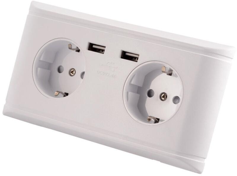 Hálózati feszültség: 230v Maximális terhelhetőség: 230v 2x 16A 1000W USB aljzat maximális terhelhetőség: 5V 2x1,2A Előlap mérete: 155 x 84 mm Süllyesztett rész mérete: 113 x 52 x 44 mm Súly: 100g További információk: Dupla hálózati konnektor 2 db USB aljzattal USB adapter helyett használható telefonok, mobil kütyük töltésére. Laptopok, nagyobb tabletek, iPadek töltés