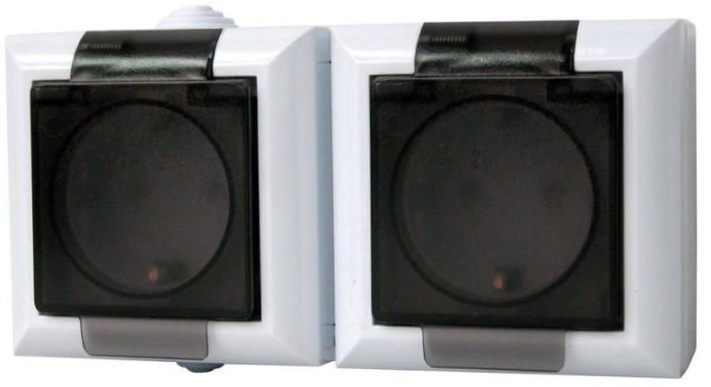 A 2 férőhelyes földelt csatlakozóaljzat IP54 kivitelben készült, ennek köszönhetően védett a fröccsenő víz ellen, így bátran alkalmazható az eső ellen nem védett felületeken is. A termék érdekessége, hogy áttetsző fedlappal rendelkezik. Család: Business Line IP védettségi fokozat: IP54 Falon kívüli: igen Süllyesztett: nem Földelt: igen Névleges feszültség: 230 V~
