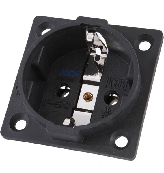 Furutech gyártmányú, elosztó dobozba beépíthető ródiumozott hálózati aljzat, NCFR technológiával.