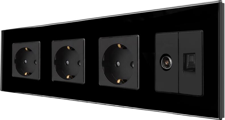 A hármas schuko aljzat + TV + internet LUXION kompakt, elegáns és minimalista kialakításával tűnik ki. A Luxion aljzatok sokoldalúak, védik a gyerekeket, a legújabb generációs technológia pedig az energiatakarékosságot támogatja. A szerkezet strapabíró, a foglalatok idővel nem színeződnek el. Minőségi és tartós anyagokból készült, praktikus termék, amely hasznosságot