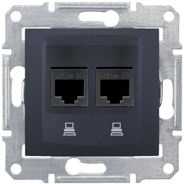 SEDNA 2xRJ45 Cat5e STP aljzat, grafit, keret nélkül :Foglalat száma: 2 Védettség:IP20 Csatlakozások pontjai: IDC Dugos csatlakozó védelmi típusa: STP Adatátviteli dugós csatlakozó típusa: RJ45 Csatlakoztatható vezetéktípus: :Merev A látható műanyagalkatrészek anyaga: Termoplasztikus ABS-UV stabilizálódott Szín:grafit Kommunikációs hálózati kategória: 5e Felületkidolgoz