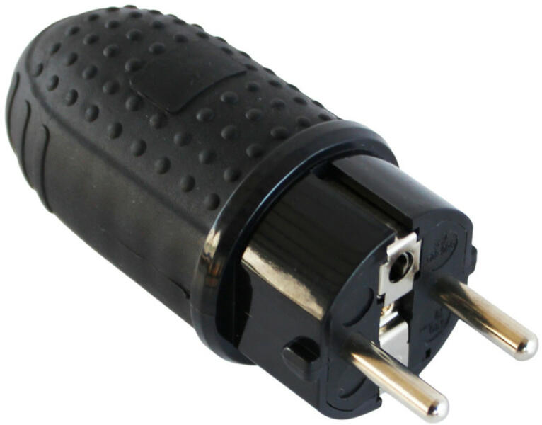 321640 - gumi anyagból - ergonómikus felülettel - 16 A; 250 V - IP44: kültéri; apró méretű szilárd tárgyak ellen védett (>1 mm); fröccsenő víz ellen védett minden irányból