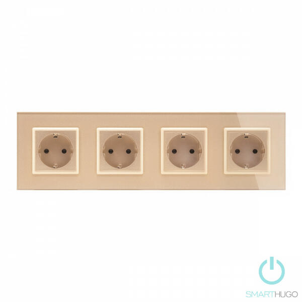 A Smarthugo Négyes Sorolt Arany Üvegkeretes konnektorokkal elegáns megjelenést varázsolhatsz otthonodba. A négy sorolt konnektort könnyedén elhelyezheted a falon, így egy helyen több eszközt is csatlakoztathatsz. A konnektorok fekete, fehér, arany és grafitszürke színekben kaphatóak, így biztosan megtalálod a stílusodhoz illőt. A konnektorok minőségi kidolgozásúak, földelt
