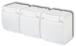 Készlet 3 távirányítható fehér konnektor, akár 25 méteres hatótávolsággal. A konnektorhhoz való közvetett látás esetén (a falon keresztül stb. ) a hatékonyság kisebb. E típusú aljzat - földelőcsappal. Védettség IP20 - beltéri használatra tervezték.