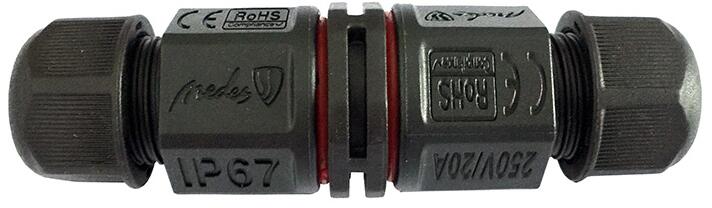 Kültéri kábelcsatlakozó konnektorMagas IP védelem - IP67. Kábel max. belső átmérője: 3x1,5 mmKábel max. külső átmérője: 10 mmHasználható földben max. 1 méter mélységigÜzemi hömérséklet: -40°C tól +105°C. Feszültség: 250 VÁramerősség: 20 A.