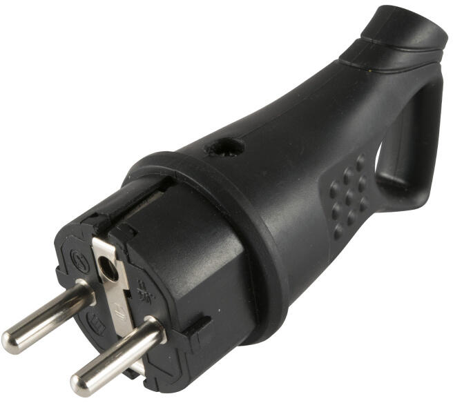 Az NGD 02 Földelt dugvilla 45°-os kábelvezetésű. Maximum 3680 W-ig terhelhetõ. A fekete színű dugvilla gumírozott anyagú, akasztóval ellátott, kül- és beltéren egyaránt használható. A dugvillához nem tartozék a kábel.