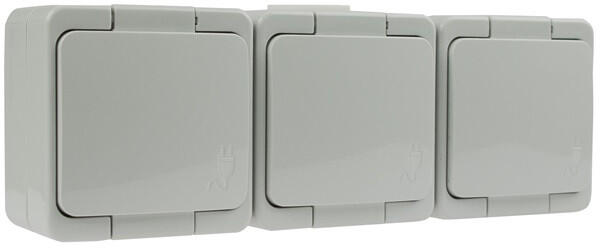 Anco 321352 Junior falon kívüli csapófedéllel IP44 fehér 3-as földelt dugaszolóaljzat - falon kívüli - fehér csapófedéllel - 16 A; 250 V; 60Hz - IP44: kültéri; apró méretű szilárd tárgyak ellen védett (>1 mm); fröccsenő víz ellen védett minden irányból - csavaros bekötésű - méretek: 188 x 65 x 44 mm - fehér