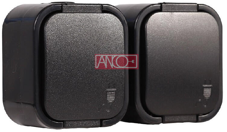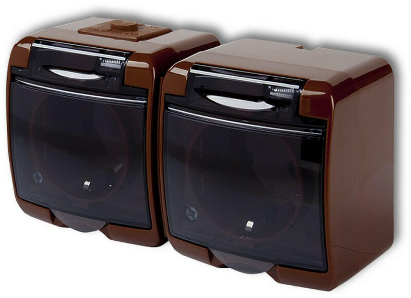 321666 - falon kívüli, vízszintes - fekete csapófedéllel - 16 A; 250 V; 60Hz - IP54: kültér; por ellen védett (nem károsító mértékű behatolás megengedett); fröccsenő víz ellen védett minden irányból - csavaros bekötésű - méretek: 133 x 77 x 50 mm - fekete