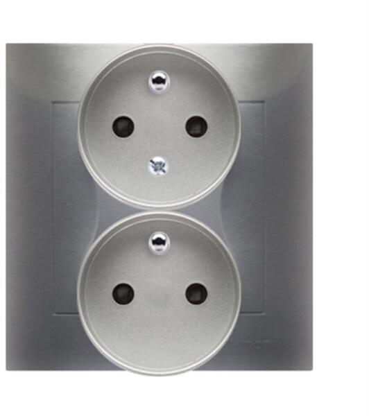 Kettős aljzat 250 V Simon 54 képernyőkkel ezüst színű Specifikáció: Sorozat: Simon 54 prémium Termék neve: Dupla aljzat redőnnyel és földeléssel Színek: Szín: 1: Ezüst Típus Maximális áram: 16 A Feszültség: 250 V AC A csatlakozók típusa IP védelem: IP20 Gyermekvédelem: Igen Anyag típusa: Anyagtípus: A termék nem tartalmazhat más anyagot, mint a következő anyagot: A