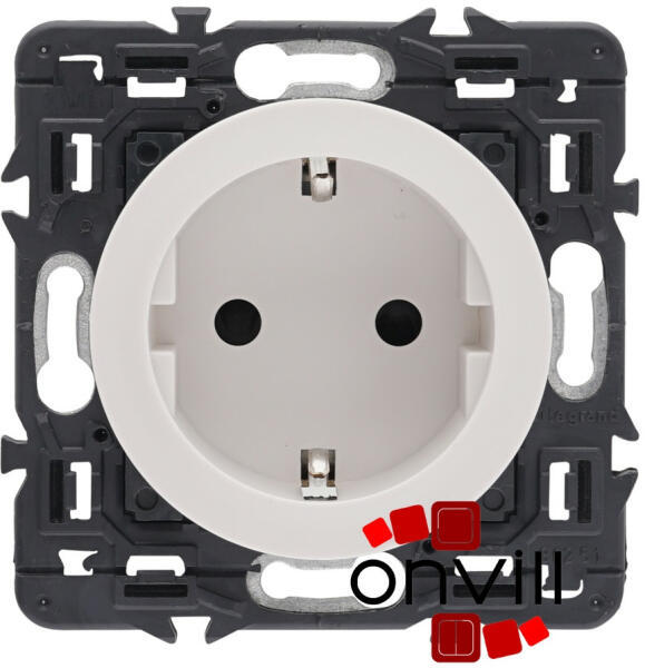 Céliane - 2P+F csatlakozóaljzat (konnektor) A csomag tartalma: Céliane körmös rögzítőperem Céliane mechanizmus Céliane burkolat A termékkép az összeszerelt szerelvényt ábrázolja, a termékeket részekre csomagolva külön cikkszámon számlázzuk és szállítjuk (rögzítőperem + szerelvény + burkolat) Földelt csatlakozóaljzat 16 A – 250 V Csavaros vezetékbekötéssel Bizto