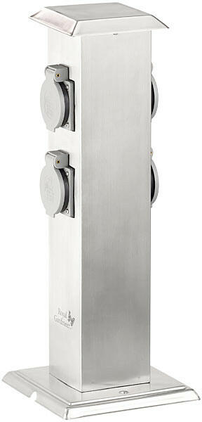 Kültéri elosztó Anyaga: időjárásálló műanyagból készült konnektorok, rozsdamentes acélból készült ház Maximális áramterhelés: 3500W, 16A (összesen) Tápellátás: 230V Mérete: 11x39,7x11 cm Talp mérete: 15,5x15,5 cm Súly: 1180 g További információk:Kerti konnektor Az inox, rozsdamentes acélból készült ház elegáns megjelenést kölcsönöz ennek a kerti konnektornak