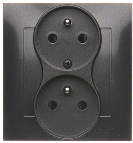 Dupla aljzat 250 V Simon 54 antracit színű képernyővel Specifikáció: Sorozat: Simon 54 prémium Termék neve: Dupla aljzat redőnnyel és földeléssel Színek: Szín: 1: Antracit Típus Maximális áram: 16 A Feszültség: 250 V AC A csatlakozók típusa: csavaros IP-védelem: IP20 Gyermekvédelem: Igen Anyagtípus: A termék nem tartalmazhat más anyagot, mint a következő anyagtípusokat
