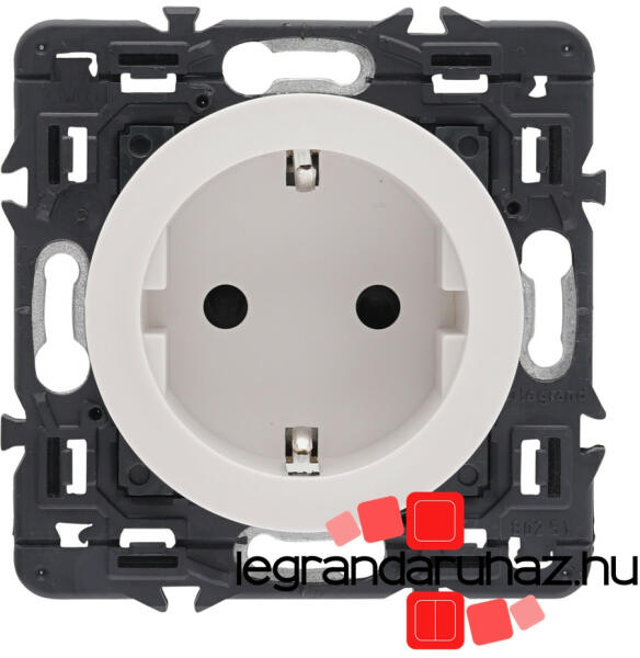 Céliane - 2P+F csatlakozóaljzat (konnektor) A csomag tartalma: Céliane körmös rögzítőperem Céliane mechanizmus Céliane burkolat A termékkép az összeszerelt szerelvényt ábrázolja, a termékeket részekre csomagolva külön cikkszámon számlázzuk és szállítjuk (rögzítőperem + szerelvény + burkolat) Földelt csatlakozóaljzat 16 A – 250 V Rugós vezetékbekötéssel Biztons