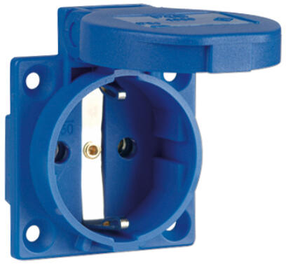 Dugalj biztonsági beépíthető 2P+E +csapófedél 16A 3P 250V műanyag 50x50mm kék egyenes P-Nova+ PCE