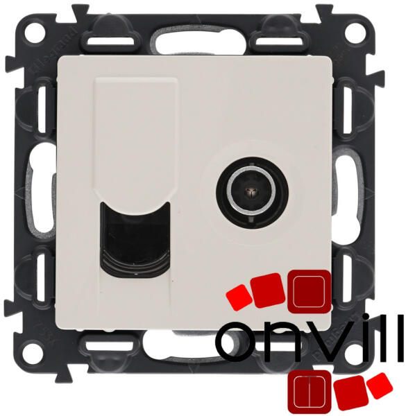 Valena Life - TV + számítógép csatlakozó burkolattal Valena Life kerettel szerelhető A termékkép az összeszerelt szerelvényt ábrázolja, a termékeket részekre csomagolva külön cikkszámon számlázzuk és szállítjuk (In'Matic szerelvény + burkolat) TV csatlakozóaljzat + RJ 45 Cat. 6 UTP aljzat TV: 0-2400 MHz. RJ 45 aljzat külső eszközök csatlakoztatására (játékkonzolok,