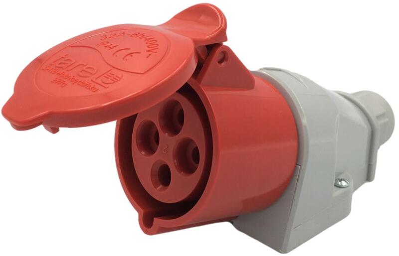 Fali aljzat 32A/400V/4P IP44 126 TAREL Feszültség: 400V Áram: 32A Pólusok száma: 4 Típus: 3P+Z Vezeték keresztmetszete: 2,5 - 6,0 mm Szín: vörös-szürke Fedettség: IP44