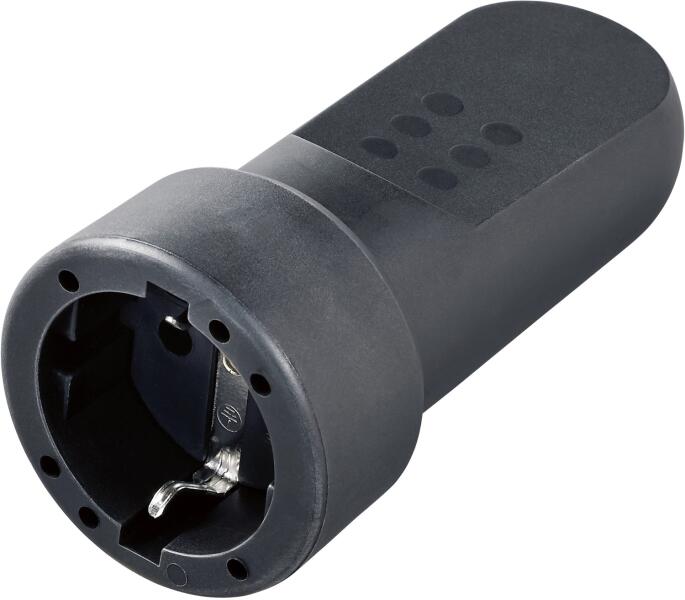 A LUX fekete színű gumicsatlakozó egy kiváló minőségű, két földelő érintkezővel ellátott gumicsatlakozó. A dugaszolóaljzat nem rendelkezik földelőstifttel. Műszaki adatok: Anyag: gumi Szín: fekete