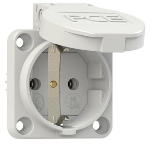 Háztartási dugalj beépíthető 2P+E +csapófedél 16A 3P 250V műanyag 50x50mm szürke IP54 S-Nova PCE