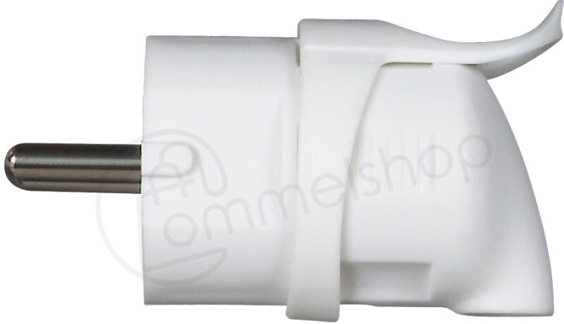 Csatlakozó oldalsó kivezetésű földelt dugvilla, 16A 250V ~, fehér