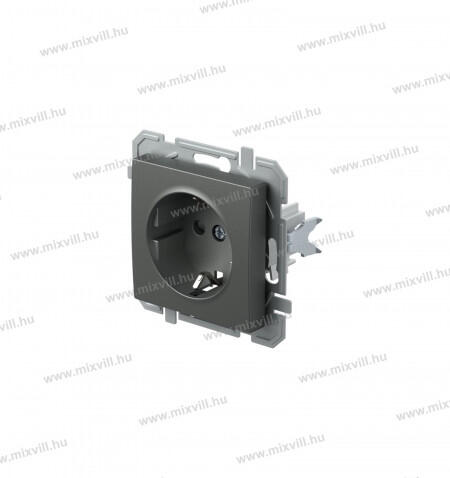 Antracit színű süllyesztett rugós bekötésű dugalj, konnektor, mely megfelel a Schuko 2P+E szabványnak, - rugós vezetékbekötés - beköthető vezeték keresztmetszet: 1,5-2,5mm2 - 2P+E schuko szabványnak megfelelő - 16A 250V AC - biztonsági zsaluval ellátva