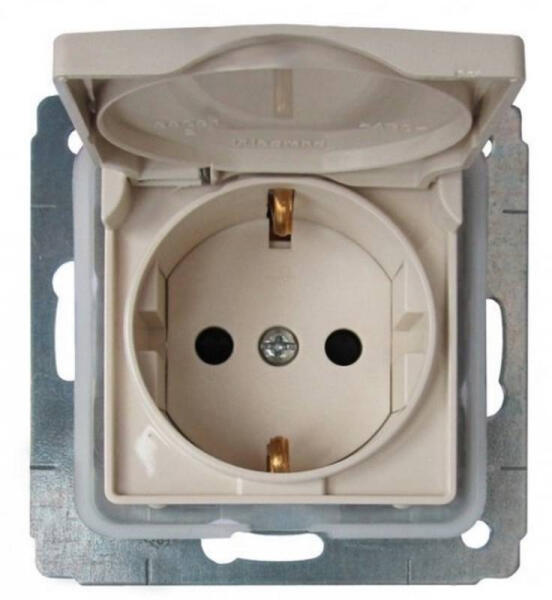 Niloé - 2P+F csatlakozóaljzat Mechanizmus keret nélkül Burkolattal ellátott Körmös rögzítés (a körmök tartozékok) 2P+F csatlakozóaljzat IP 44-es védelemmel 250 V~ 16A Rugós vezetékbekötéssel Biztonsági zsaluval Bézs Csatlakozás: Rugós vezetékbekötés Kábel csupaszítási hossz: 9 mm Vezetékméretek: max. 6 x 2.5 mm2 Hajlékony vagy merev vezetékkel is kompatibilis Csava