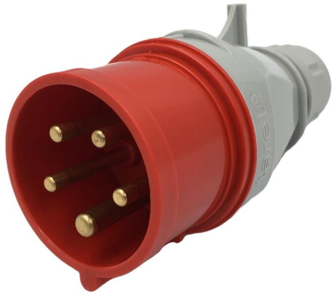 Kábeldugó 16A/400V/5P IP44 105 TAREL Feszültség: 400V Áram: 16A Pólusok száma: 5 Típus: 3P+Z Vezeték keresztmetszete: 1 - 2,5 mm Szín: vörös-szürke Fedettség: IP44