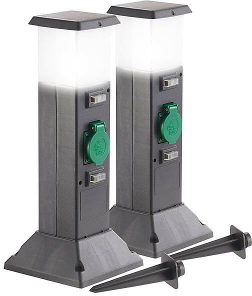 Kültéri elosztóHáz anyaga: műanyag (masszív és időjárásálló) Burkolat színe: diszkrét fekete-zöld 2 foglalat: 16 A / 250 V Maximális terhelés: 3680W (összesen) Tápellátás: 230V Mérete: 10x40x10 cm Talp mérete: 15,5x15,5 cm Súly: 950 g/db További információk:Kerti konnektor A kültéri dupla aljzat tökéletes választás a kerti elektromos készülékekhez. Csatlakoztass