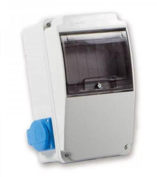 Ipari doboz Anyaga: műanyagMéret: 130 x 220 mmOldallapon: 2 x ( 2P+ F) háztartási dugaljElőlap: üresModulok száma: 6IP védettség: IP44 Adatlap