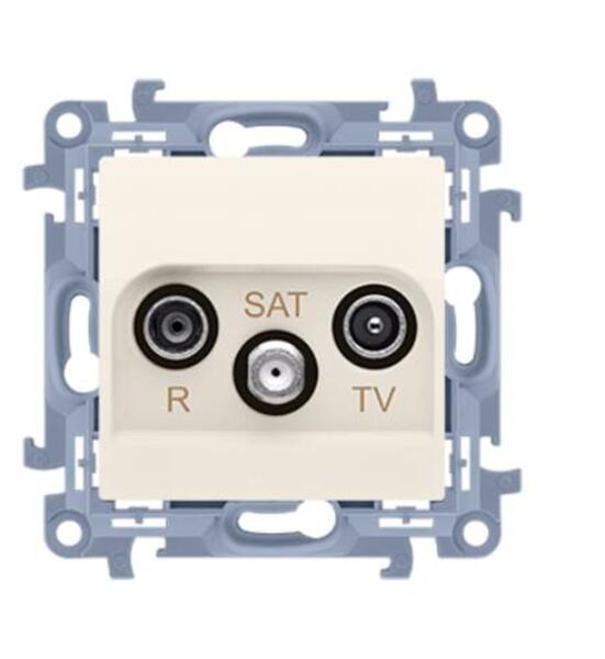 Antennacsatlakozó R-TV-SAT terminál (modul) 1dB, bézs színű Specifikáció: Sorozat: Simon 10 Termék neve: Antenna aljzat R-TV-SAT terminál Szín: RAT-STAT kábel, RAT-STAT kábel, RAT-STAT kábel: Bézs Típus: modul A csatlakozók típusa: dugó, csavaros csatlakozók IP-védelem: IP20 Frekvenciatartomány: 5-2400 MHz Csökkentés: RTV-1,0 dB, SAT-2,0 dB Material Type: Halogénmentes műa